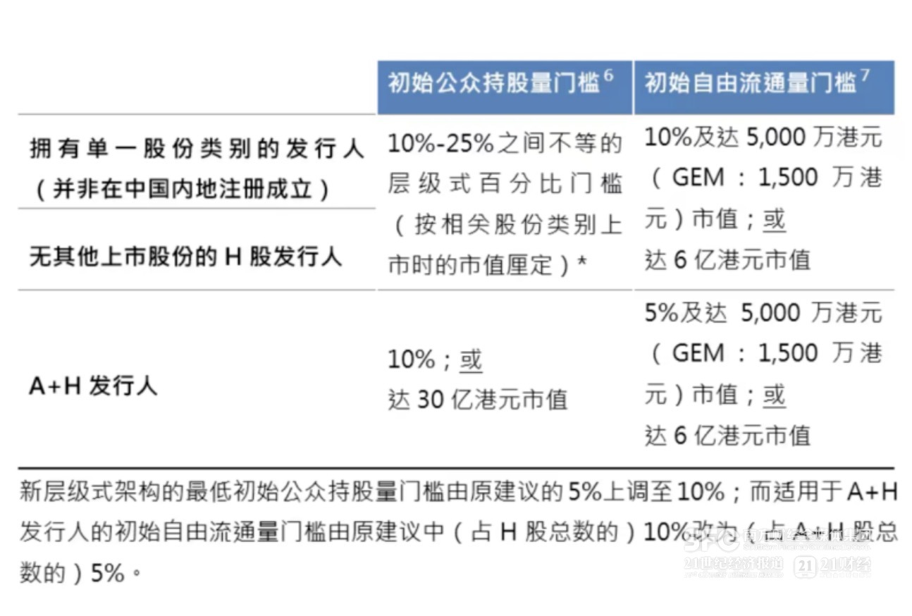 此外,新规对于公开市场规定方面的主要变化是初始公众持股量及自由流通量的调整。